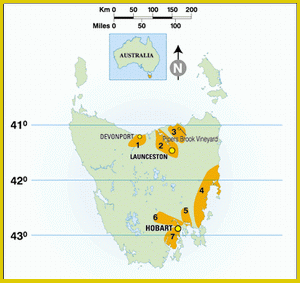 D'Entrecastreaux: Not on the map, but south of Hobart, a few wineries have recently started in this area.